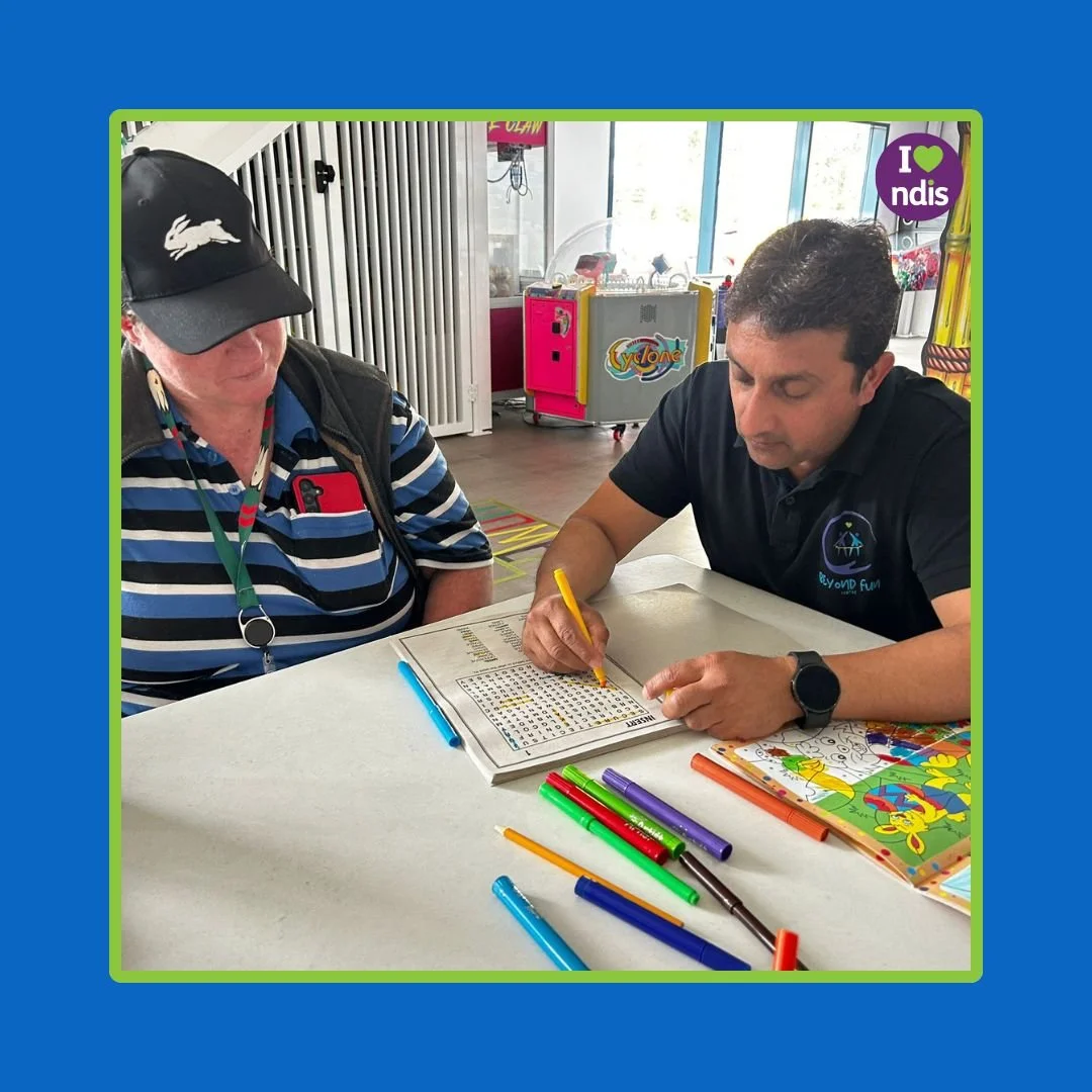 Today at Beyond Fun, participants enjoyed a relaxed, engaging day filled with a variety of activities. The group spent time doing crosswords, playing cards, colouring, and watching a movie together, creating a calm, social atmosphere where everyone could participate in their own way.